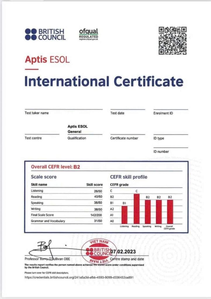 Aptis ESOL – chứng chỉ đánh giá năng lực tiếng Anh quốc tế được nghiên cứu và thiết kế bởi Hội đồng Anh và được công nhận tại hơn 85 quốc gia trên thế giới.