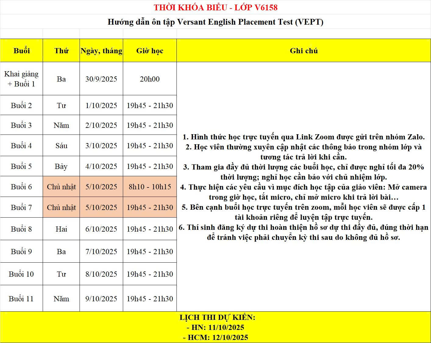 Ngày thi (dự kiến): Thứ 7 – 11/10/2025 và Chủ nhật – 12/10/2025